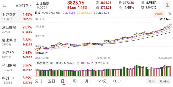 8月(yuè)22日(rì),A股上(shàng)漲,滬指突破3800點,再創10年(nián)新高(gāo)。